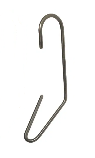 Hak wędzarniczy do podudzi wykonany ze stali nierdzewnej. Kształt haka pozwala na pewne i szybkie zawieszanie udek. Drut fi 3, długość około 11cm zawieszka na drążek fi 25.