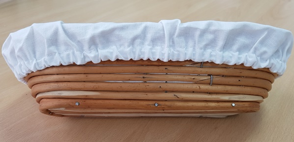 Wszyta gumka pozwala na idealne rozłożenie tkaniny w koszyczku.