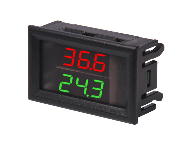 - Pokazuje 2 temperatury z dwóch sond niezależnie